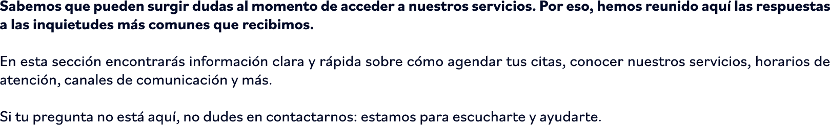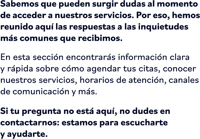 Puede agendar tu cita a través de nuestro call center, comunicándote al 601-7944011.